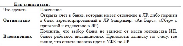 Подготовить пояснительную записку: «ИП использует аутсорсинг логистики, управление и учет ведутся из льготного региона, что подтверждается договорами, актами, платежами».