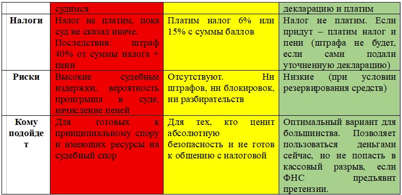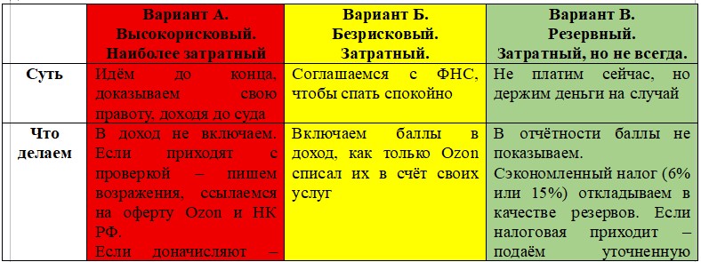 Учитывая текущую позицию ФНС и отсутствие устоявшейся судебной практики в пользу налогоплательщиков, наиболее рациональным представляется Вариант В.