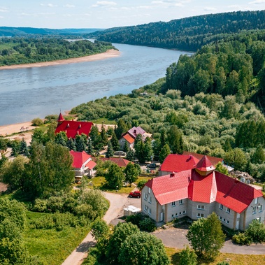— Загородный клуб «Петропавловск» (в прошлом пансионат «Наследие») широко известен как туристическая достопримечательность Кировской области и за пределами региона. Наши частые гости — из центральной России и ближнего зарубежья. Многие приезжают ежегодно на протяжении десятилетий. Зачем? Ответ один — за красотой природы. Самый главный наш продукт — это место, где расположен Загородный клуб. Река Вятка, прекрасный вид, холмы со всех сторон, крайне живописные пейзажи. Не зря здесь проводились встречи художников и написаны десятки картин. Часть из них представлена на стенах в главном корпусе клуба.