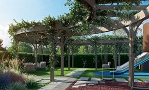 Если посмотреть на двор-сад «Булычёва» сверху, увидим причудливую протяженную перголу, выполненную в концепции «зелёная река», она бережно укрывает двор и способствует формированию особенной атмосферы приватности. Под перголой расположатся подвесные качели, где маленькие обитатели «Булычёва» обязательно будут делиться друг с другом своими секретами и весело проводить время, а взрослые всегда с удовольствием смогут окунуться в детство.